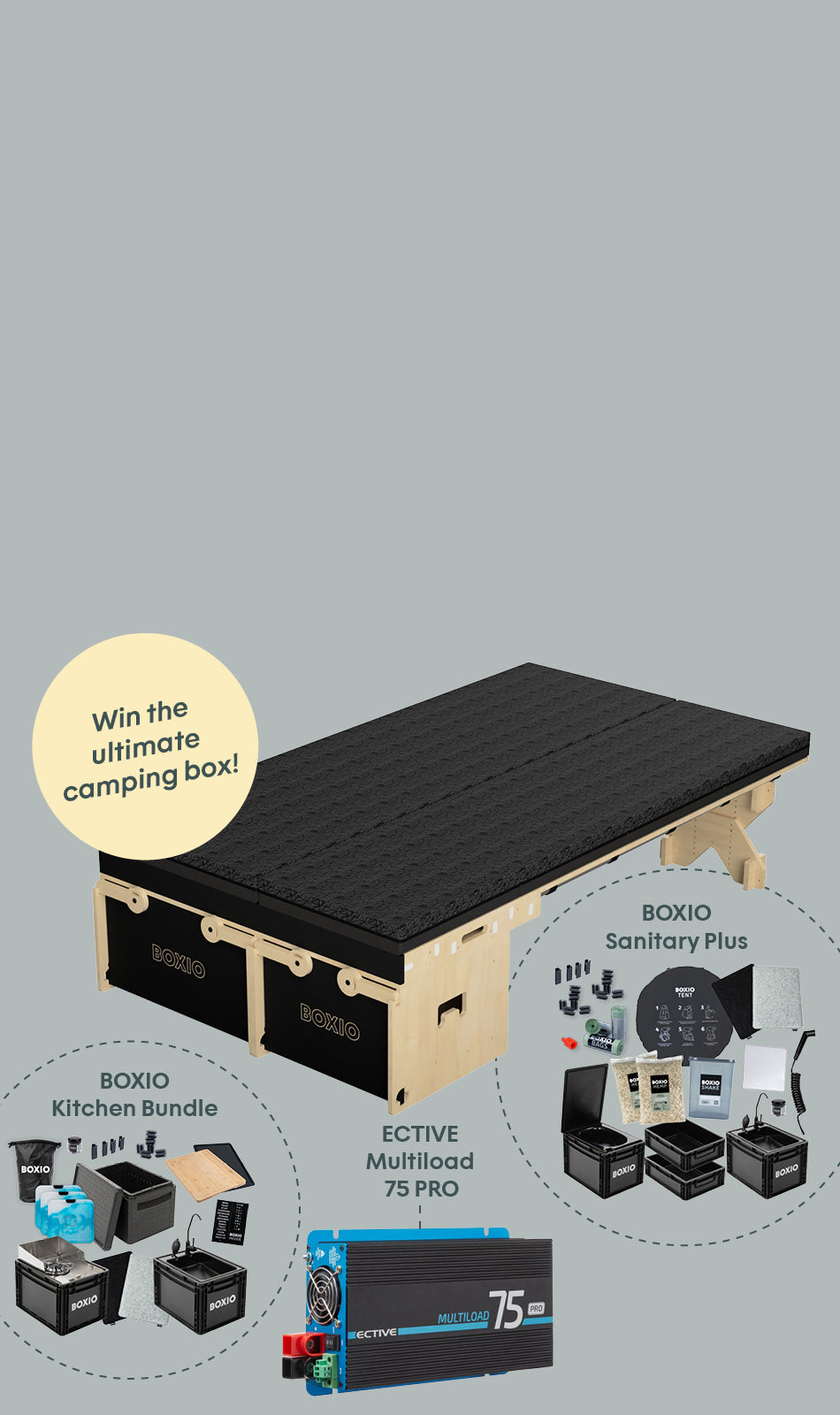 BOXIO combina funcionalidad y practicidad en un ecosistema de productos inteligentes. Ya sea de viaje, en tu furgoneta camper o en el camping, nuestros productos te ofrecen soluciones innovadoras para tu próxima aventura.