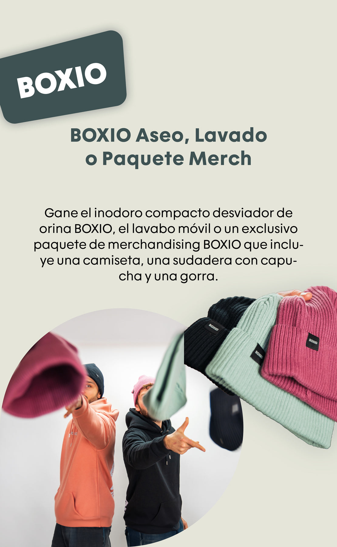 - Un exclusivo paquete de merchandising BOXIO que incluye camiseta, sudadera con capucha y gorra