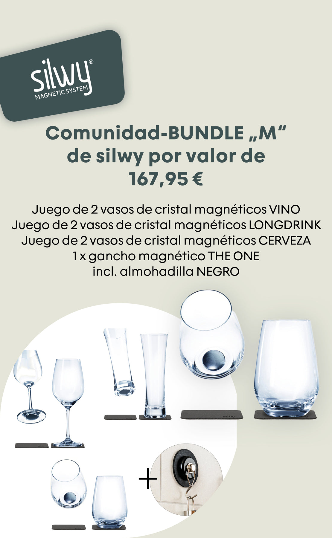 - Vajilla y vasos magnéticos en el Community Bundle M valorados en 167,95 euros de silwy.